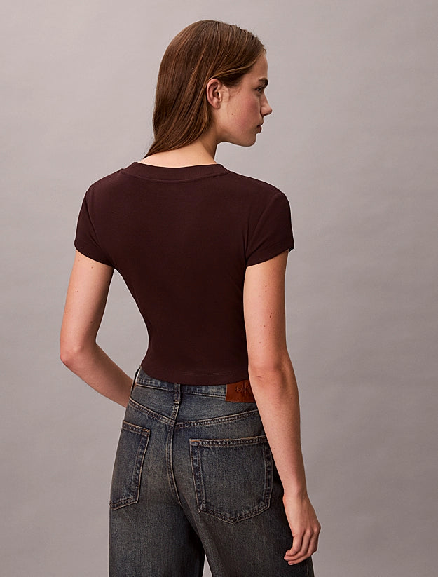 LV047C910G YAA A- SS WOVEN LABEL RIB VNECK TEE