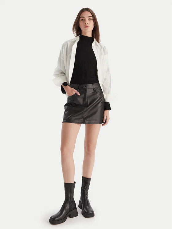 CK LV044D622G UB1 FAUX LEATHER 5PKT MINI SKIRT
