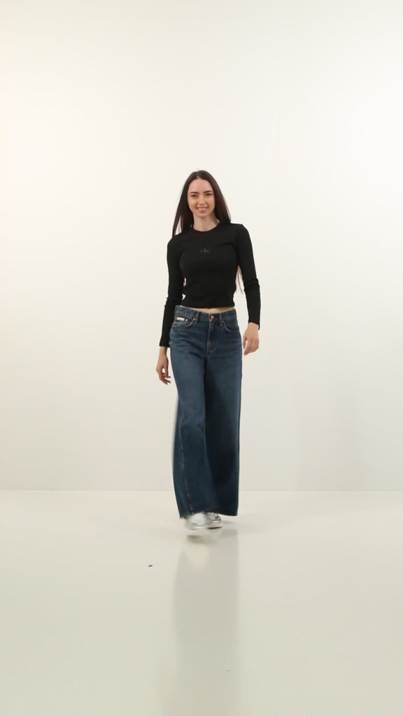 ג׳ינס אופנתי בגזרה רחבה במיוחד (Ultra Wide) בעיצוב עדכני ונוח של קלווין קליין. עשוי כותנה דנים איכותית עם מעט גמישות לנוחות מקסימלית ושמירה על צורתו. מגיע בגימור לודלו (Ludlow) בגוון כחול קלאסי, עם מותניים גבוהות, רוכסן וכפתור סגירה, ולוגו רקום בגב. מושלם למראה אורבני טרנדי עם טופ או חולצה תחובה.